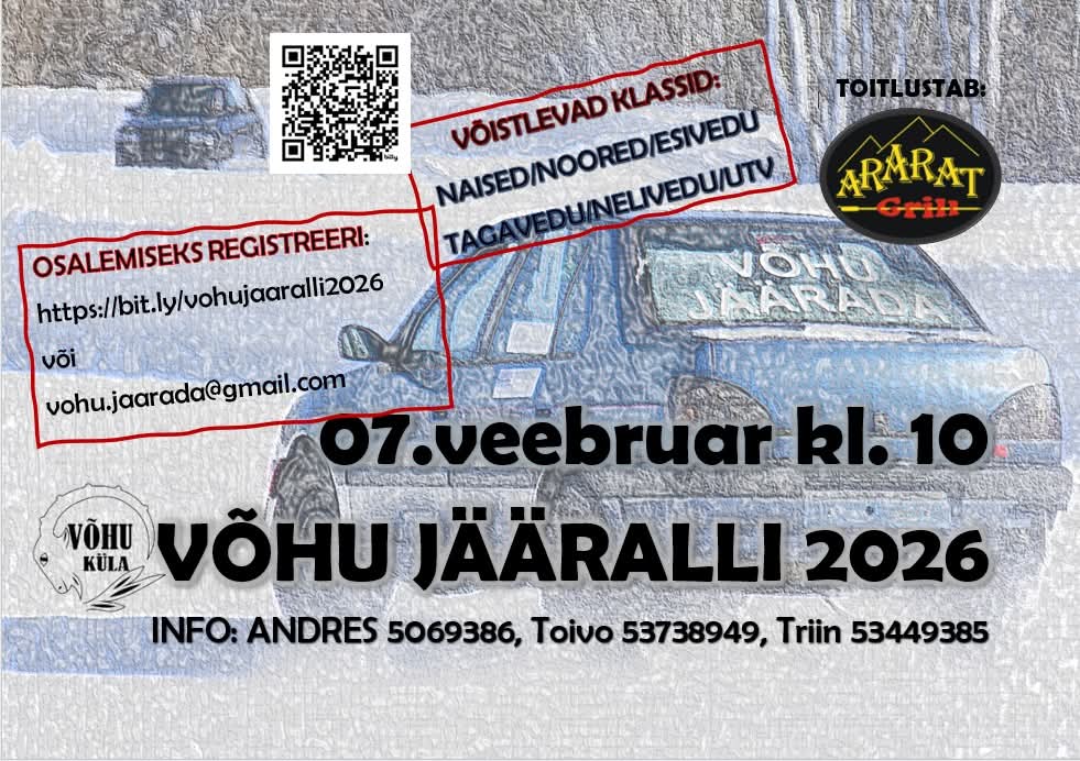 Registreerimine e-mailil: vohu.jaarada@gmail.com või vormi kaudu: https://bit.ly/vohujaaralli2026